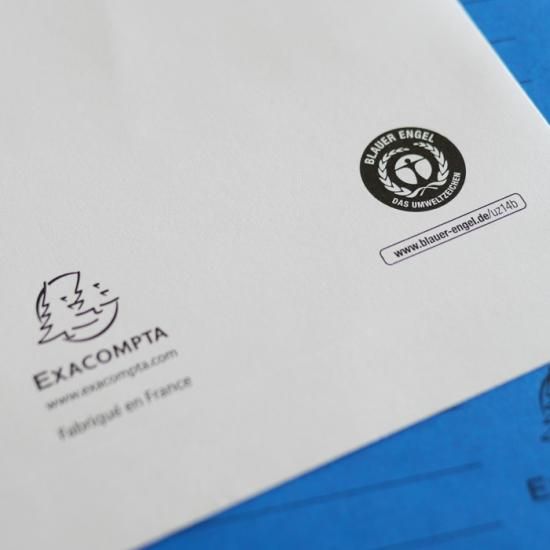 ●環境に配慮した120gsm リサイクル紙を使用。ブルーエンジェルマーク入りのエコな書類フォルダーです。