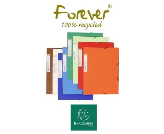 フランス エグザコンタ社 100%リサイクル紙が使用されている『FOREVER』シリーズのA4ゴム留めファイルです。 100%再生紙ならではのやさしい色合い・触り心地をお楽しみください。3方フラップ+ゴム止めが付いているので移動中にバラけることがありません。マチ付なので、コピー用紙なら120枚程度までファイルできます。