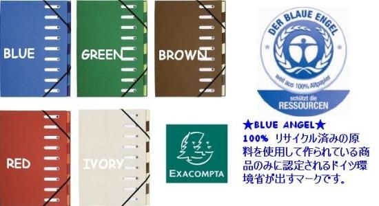 EXACOMPTA 社 100%リサイクル紙が使われている『FOREVER』 シリーズのマルチパートファイル9分割です。閉じたままでも中身が分かる窓がついているのでとても便利。背表紙が接合されていることによりマチがあっても書類がバラけずにしっかりとファイリングできます。