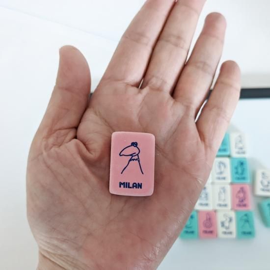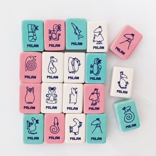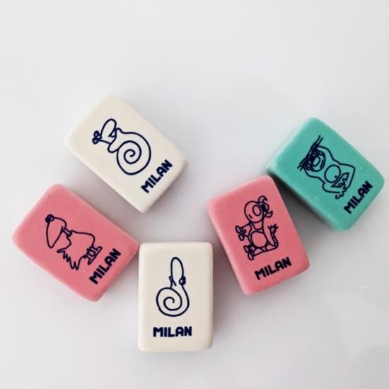 ヨーロッパの消しゴムメーカーとしての知名度はナンバーワンのミラン。小さくてかわいいので、たくさん集めたくなります!それぞれのキャラクターが皆、とぼけた感じが何とも言えず、カワイイです。そんな 「動物柄 4060」を5個セットにしました。どのキャラクター・カラーが届くかは、お楽しみに〜♪