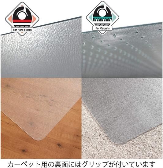 チェアマットの裏面にグリップが付いています。カーペットの毛足を掴んでチェアマットのズレを防ぎます。