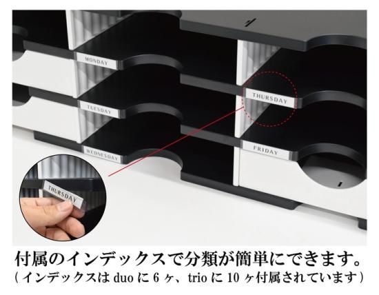 ■付属品:引き出し(仕切り付)×2/インデックス 6個(インデックス用ラベル紙6枚)